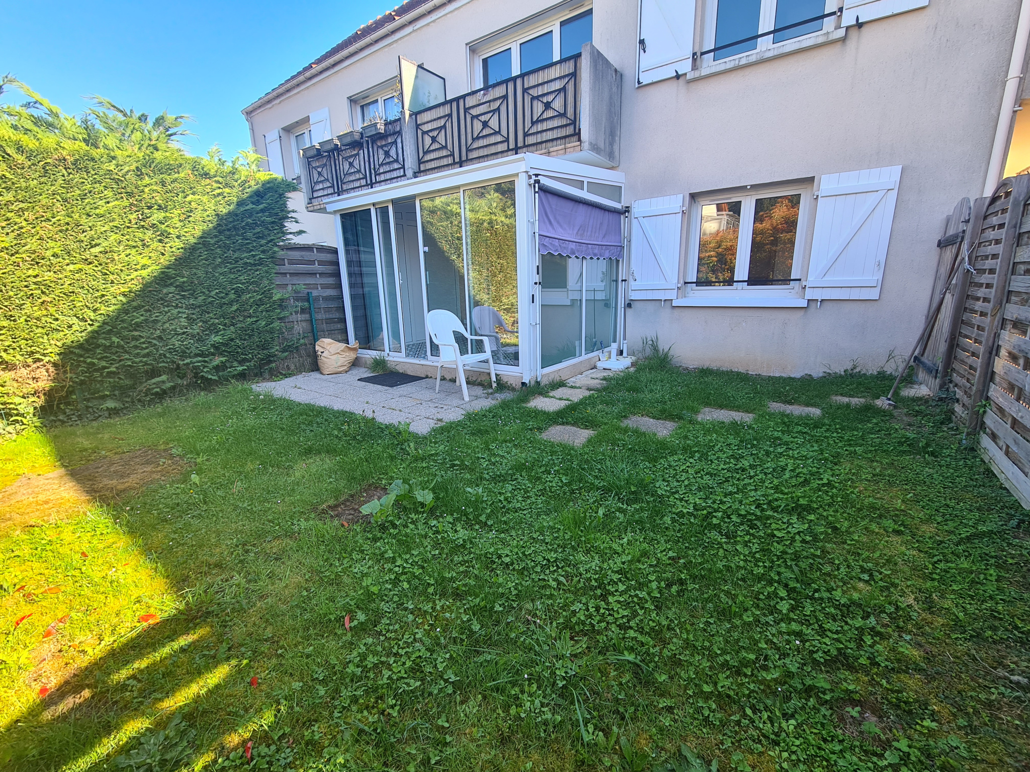 10' RER, petite résidence calme, appartement 2 pièces avec jardin : coin-cuisine aménagé, plaques, hotte, four, séjour, vérandas, terrasse, jardin,...