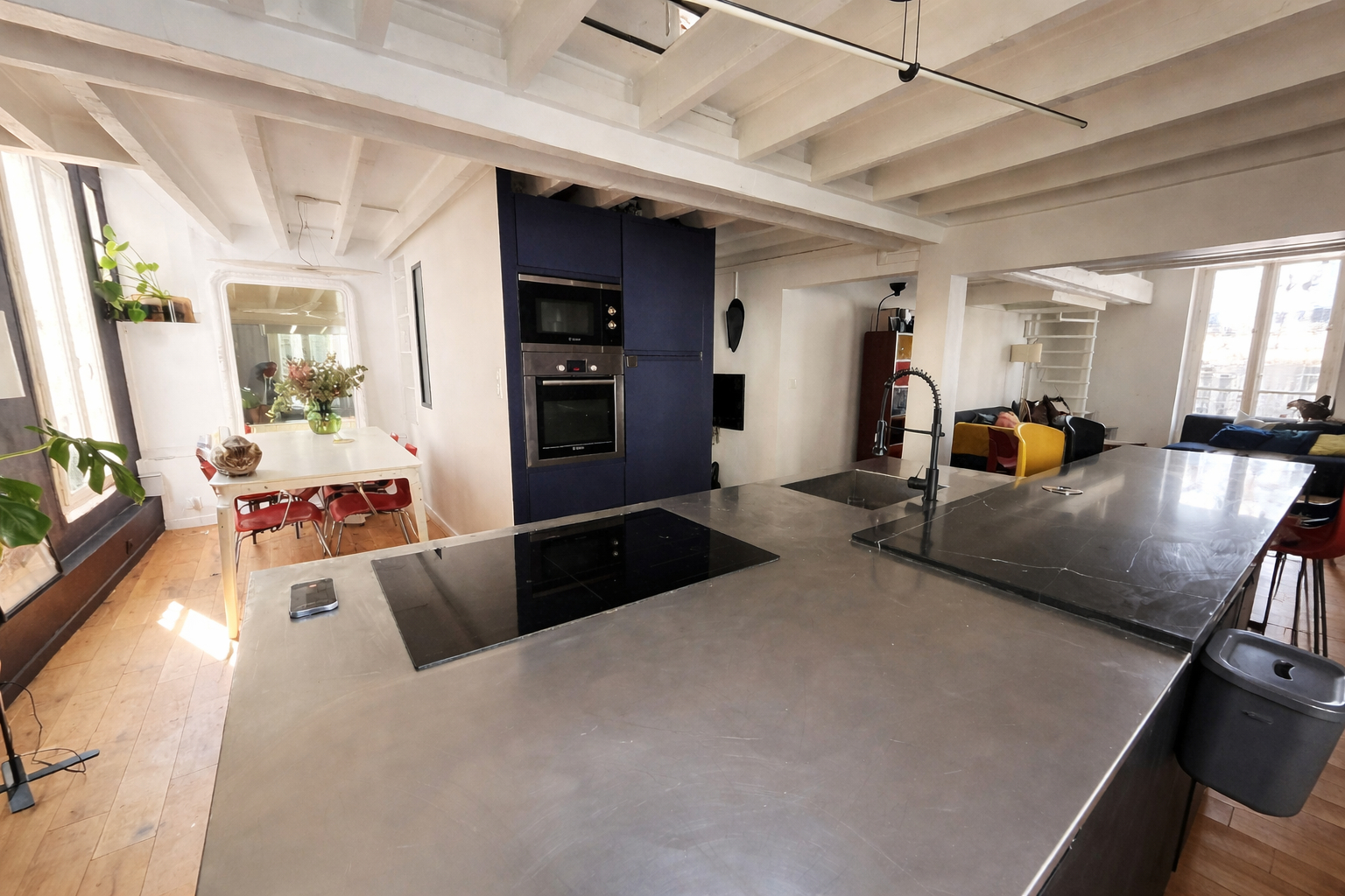 Quartier Notre-Dame-des-Champs. Au dernier étage d'un immeuble ancien avec ascenseur, ce duplex atypique de 88,13 m² au sol (79,04 m²...