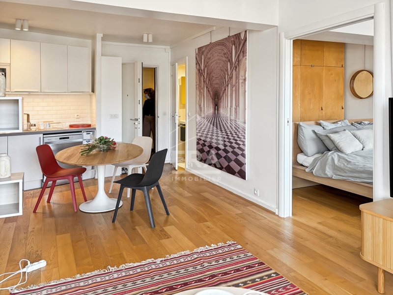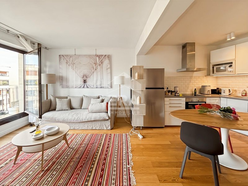 Idéalement situé à deux pas du Trocadéro, ce spacieux deux pièces d'environ 43 m² offre une belle luminosité et une vue dégagée sur La Défense et le Sacré-Coeur.