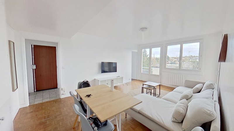 À seulement 10min à pieds de la station "MANTES LA JOLIE" (Ligne J et TER vous menant directement à SAINT LAZARE), ainsi qu'à proximité direct des commerces (ELeclerc, Lidl, Auchan), dans un immeuble TRES BIEN ENTRETENU, au 5ème et DERNIER ÉTAGE, un appartement en PARFAIT ETAT de 72m² composé comme suit : une entrée AVEC RANGEMENTS, un séjour ENSOLEILLÉ exposé SUD avec vue TOTALEMENT DÉGAGÉE donnant sur un BALCON, une cuisine séparée totalement ÉQUIPÉE ET AMÉNAGÉE (Four, micro-ondes, Frigo, Lave vaisselle), trois chambres AVEC PLACARDS et coin bureau, deux salles d'eau (dont une privative), un dégagement avec espace buanderie (machine à laver), un CAGIBI ainsi qu'un WC.