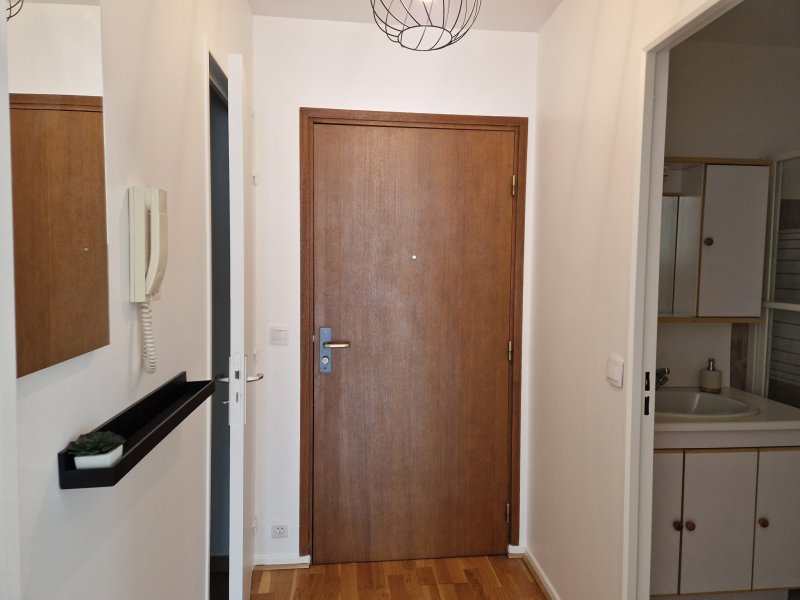 Grand studio meublé fonctionnel de 35,73 m2 avec balcon comprenant : Une entrée, une pièce principale avec accès à un balcon et une cuisine ouverte équipée, un placard, un WC indépendant et une salle de bains. Un cave et une place de parking extérieure privée. Libre au 05 janvier 2026