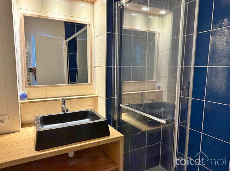 Il comprend une entrée avec placard, un WC avec lave-mains, un séjour lumineux avec double exposition et une grande baie vitrée donnant accès au balcon, une cuisine entièrement équipée, deux chambres, et une salle d'eau avec douche à l'italienne.