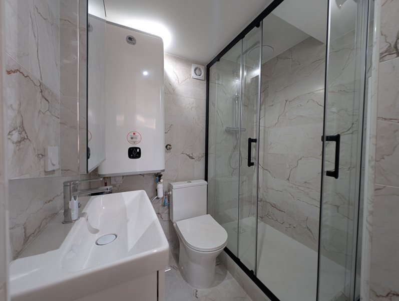 Dans une maison divisée en 2 appartements, studio neuf en entresol loué meublé avec cuisine aménagée et équipée et une salle d'eau avec wc.