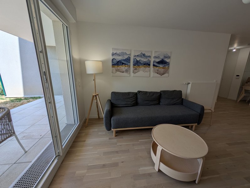 Cet appartement meublé et lumineux, situé au rez-de-chaussée, offre un cadre de vie paisible et confortable.
