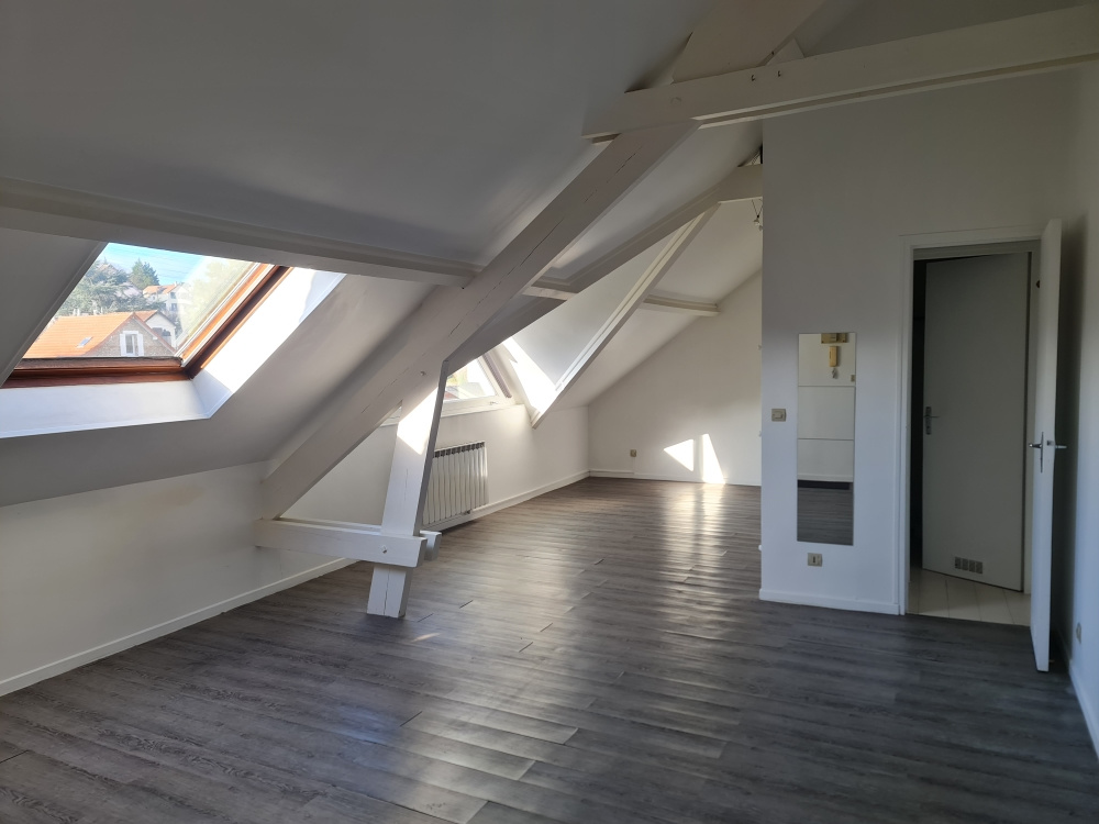 Nous vous proposons à la location vide, ce bel appartement de trois pièces en duplex avec une vue agréable comprenant une entrée / escalier , un séjour avec un coin cuisine aménagé au 1er étage. Au deuxième étage, une salle de bain claire avec velux comprenant une baignoire les toilettes, un lave-mains. une petite pièce à usage de bureau, une belle chambre de 13.30 m2.