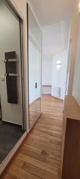 28 rue Marceau (hyper centre), au pied des commerces et du métro Mairie d'ISSY, vue sur la place de la Mairie, Appartement exposé sud-est refait à neuf et isolé par architecte d'intérieur (nombreux rangements/agencements sur mesure) au 3ème étage (ss asc.) : entrée distribuant salle d'eau avec WC (et espace LL), séjour avec cuisine meublée et totalement équipée), espace nuit avec dressing. Cave. Disponible. Dépôt de garantie 1.000,00 €. honoraires de location 464,03€TTC