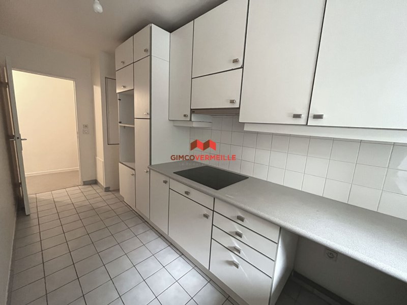 Ce bien de type trois pièces situé au 1er étage vous offre une entrée avec placard, un séjour de 19.59m² , une cuisine aménagée (hotte et plaque de cuisson), deux chambres avec placard, une salle de bains et un wc séparé.