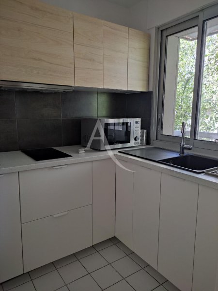 Dans une résidence sécurisée, un beau studio meublé au 4ème étage avec ascenseur comprenant une entrée avec placards, une grande pièce lumineuse avec balcon, une cuisine équipée et une salle de bains avec WC.