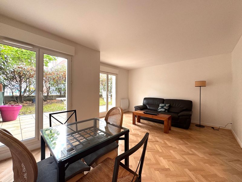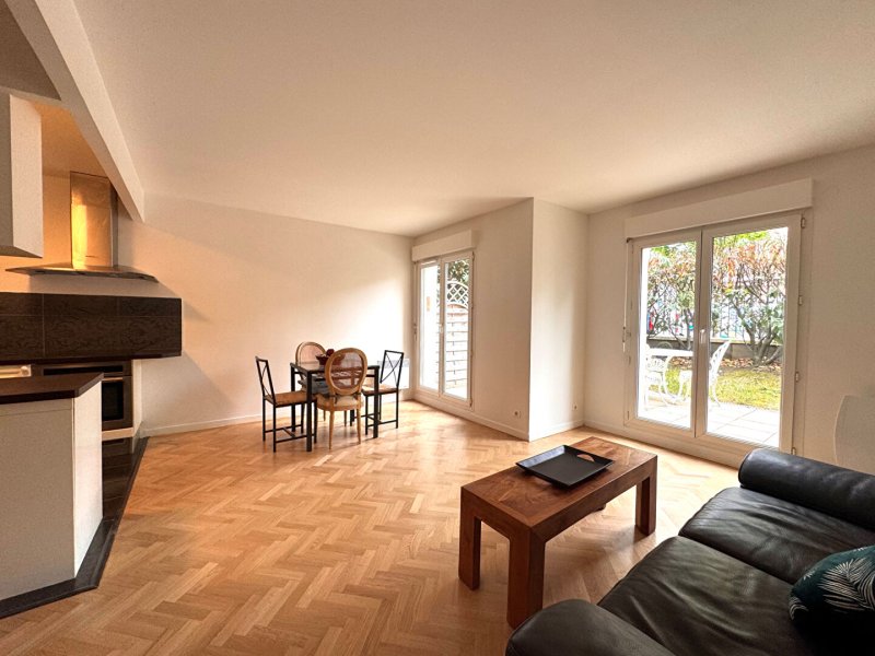 LA GARENNE COLOMBES - Très bel appartement meublé situé au RDC d'un immeuble récent proche des commerces. Il se compose d'une entrée, un séjour s'ouvrant sur une charmante terrasse/jardin privatif, une cuisine aménagée et équipée, une chambre avec placard donnant accès également au jardin, une salle de bains et des WC séparés. Appartement calme et à saisir au plus vite !