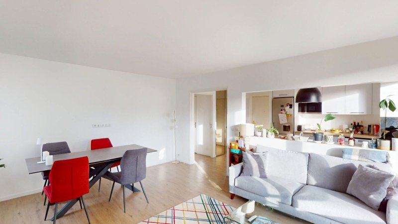 Il se compose d'une entrée, d'un séjour parqueté plein soleil donnant sur un balcon loggia, d'une cuisine ouverte sur séjour, de deux chambres (rangements), d'une grande salle de douche avec fenêtre, de toilettes séparés.