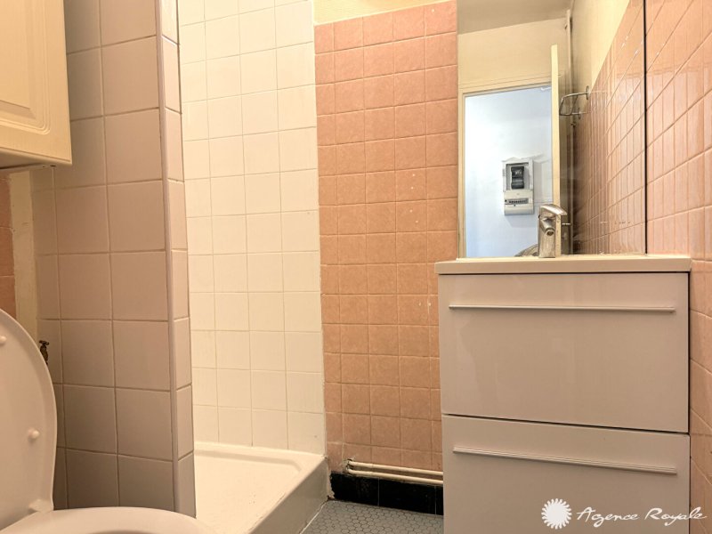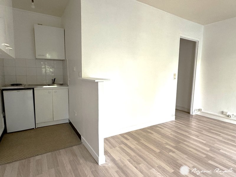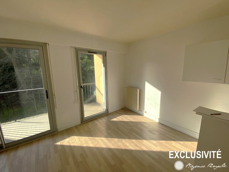 Dans Résidence avec ASCENSEUR, Studio de 22,95m² : Entrée avec placards, Pièce principale avec Kitchenette sur beau BALCON Ouest, Salle de douche, WC. Cave. PARKING. Calme, Vue sur jardin, sans vis à vis.