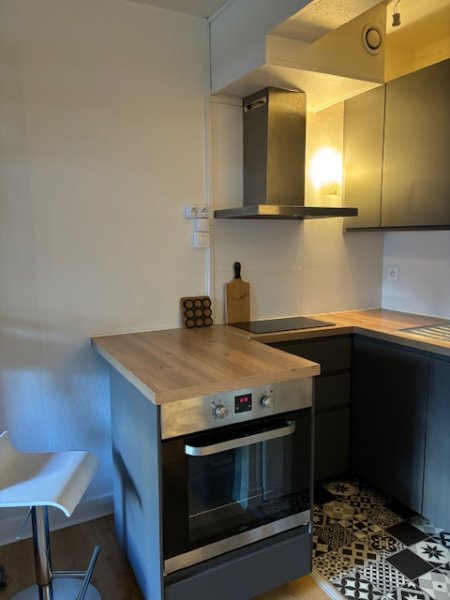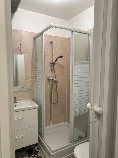 un STUDIO meublé comprenant, une entrée avec placard, une kitchenette, une salle d'eau avec WC et une cave. Modalité d'au chaude et de chauffage : individuelle électrique par ballon d'eau chaude électrique