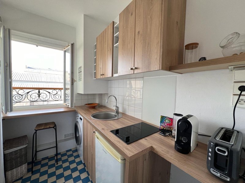Rue Raspail à 5 min. de la gare Clichy Levallois, à 8 min. du métro Anatole France, au dernier étage d'un immeuble de 3 étages, studio meublé comprenant : pièce principale, cuisine équipée, salle d'eau et WC, placards.