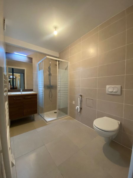 Ce logement comprend une entrée avec placards, un salle d'eau avec WC ainsi qu'un pièce à vivre avec cuisine ouverte de 23m².