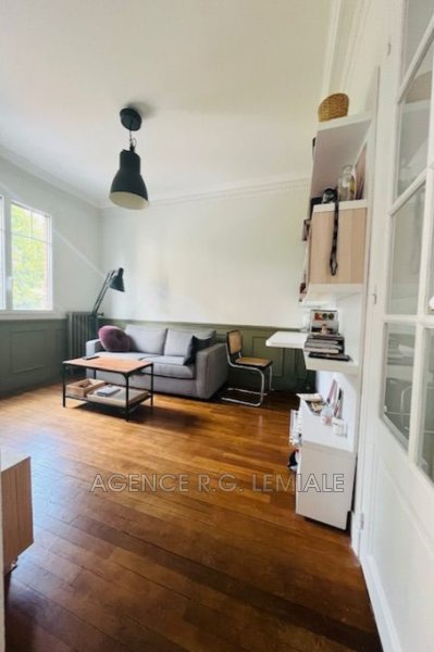 AGENCE RG LEMIALE: Proche centre ville, à 10 minutes de la gare RER, grand et beau deux pièces en parfait état dans un immeuble ancien de charme. belles prestations, moulures, parquets, espace télétravail fibré. cuisine équipée Isolation et doubles vitrages. Jardin collectif, chauffage individuel au gaz.