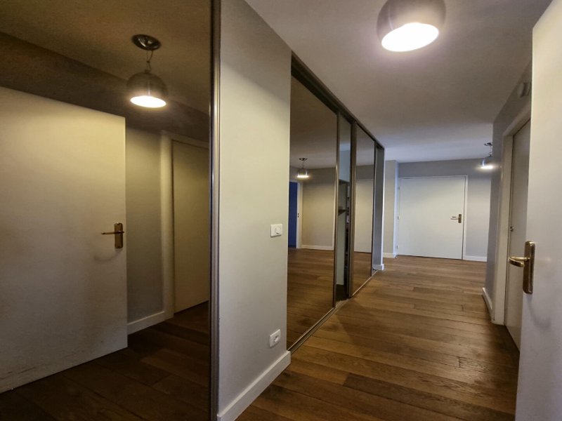 MAISONS LAFFITTE : 5 min RER - Au sein d'une résidence récente avec ascenseur, bel appartement de 4 pièces meublé rénové avec goût, comprenant une belle pièce principale ouvrant sur le balcon exposé sud ouest, cuisine ouverte aménagée et équipée, trois chambres avec placard, salle de bains, wc indpt.