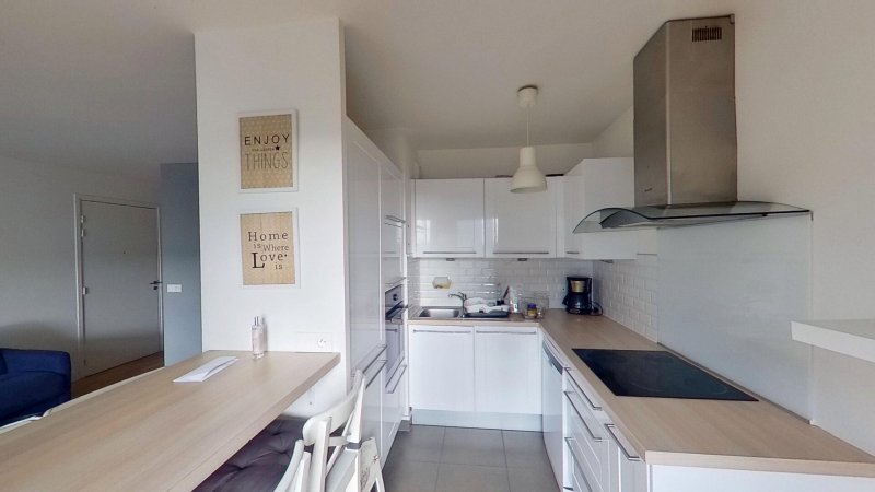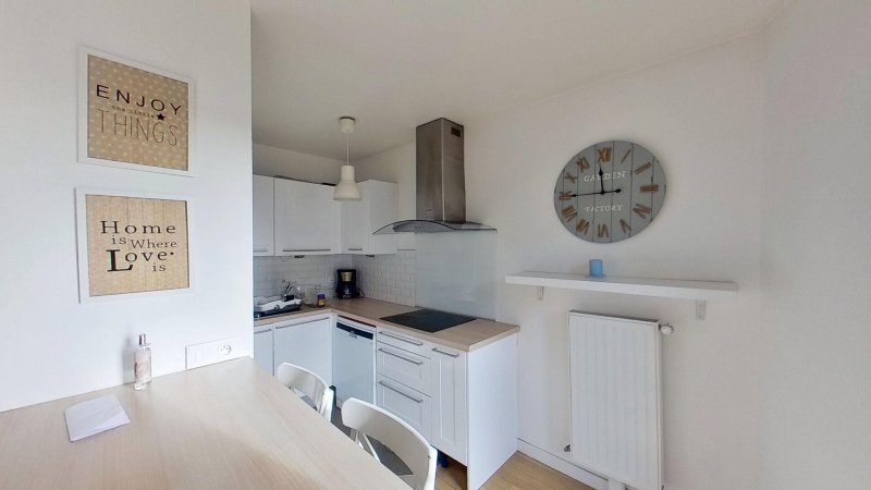 Il se compose d'un séjour lumineux, de 2 chambres, d'une cuisine séparée équipée et d'une salle de bain.