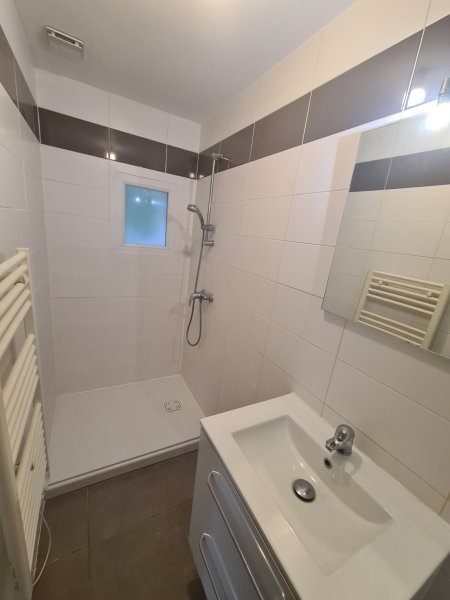 Quartier calme et verdoyant, petite résidence, Appartement 2 Pièces, comprenant : coin-cuisine aménagé (plaque), séjour, jardin, chambre, salle d'eau. 2 parkings extérieurs. 796 EUR C.C D.G : 771 EUR / F.A : 549.25 EUR