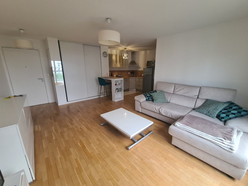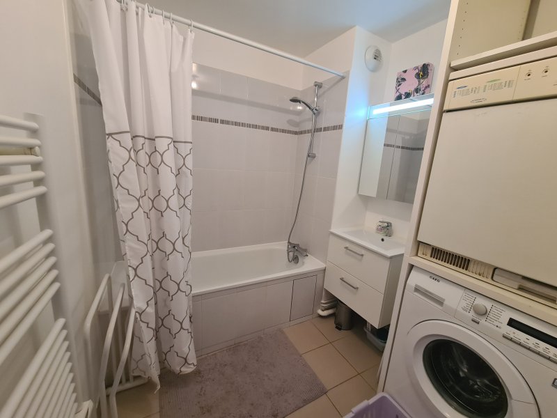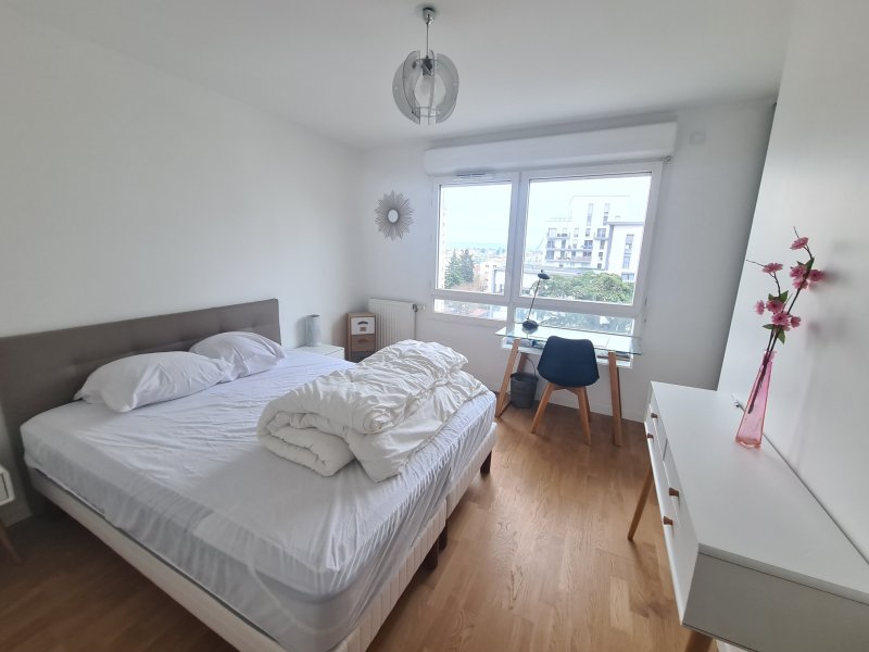 5' RER, résidence standing récente avec ascenseur, appartement 3 pièces MEUBLE comprenant : coin- cuisine aménagé, séjour, balcon, 2 chambres, salle de bains, wc indépendant. 2 places de parkings en sous-sol l'une derrière l'autre. (TV, lave vaisselle et sèche linge : non remplacés en cas de panne) 1295 EUR Chauffage et eau compris D.G : 2200 EUR / F.A : 815.67 EUR