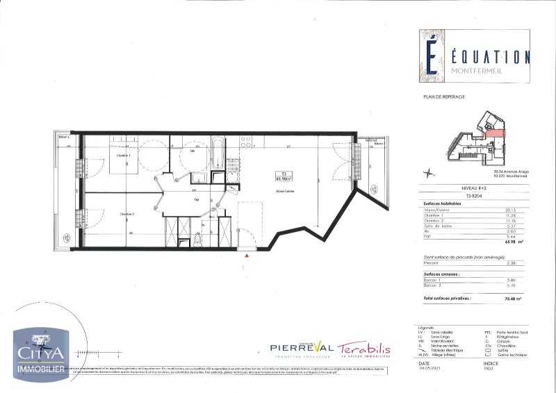 À LOUER : Appartement récent T3 situé à Montfermeil, dans le département de la Seine-Saint-Denis (93370). Ce bien d'une superficie de 65 m² se trouve au deuxième étage d'un immeuble de quatre étages, offrant ainsi un cadre de vie agréable et accessible.