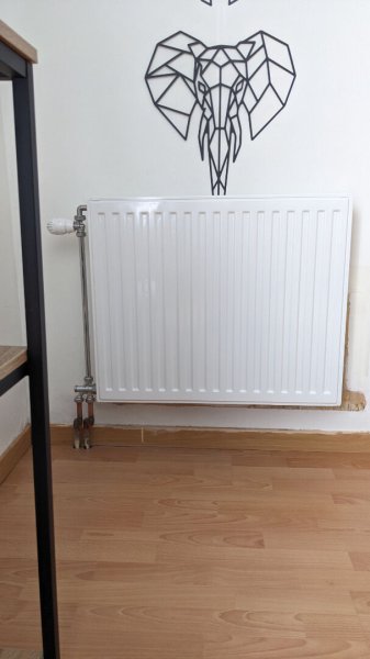 Le chauffage individuel est assuré par des radiateurs au gaz et l'eau chaude est produite par une chaudière. Les radiateurs ont été remplacés depuis (cf. dernière photo).