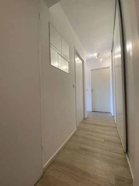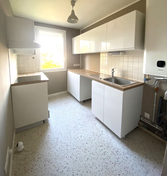 Quartier Sourderie Sud, appartement rénové au calme, donnant sur verdure 3 pièces, au 1 er étage, comprenant : entrée avec placard, séjour avec balcon, cuisine indépendante aménagée et semi-équipée, dégagement avec placard, 2 chambres, dressing, salle d'eau, wc indépendant.