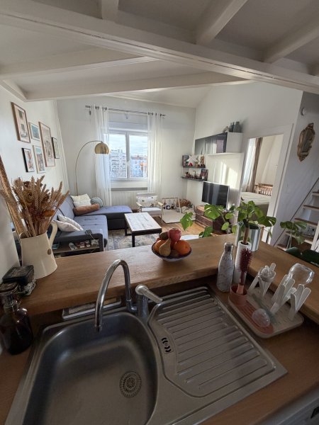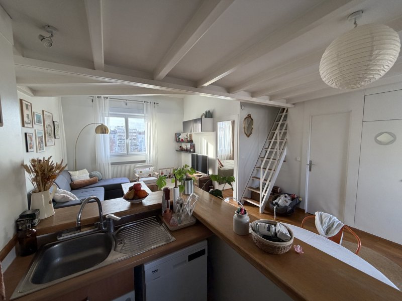 34 bis rue Estienne d'ORVES, au 3ème et dernier étage SANS ASCSENSEUR, un appartement loué vide ensoleillé de 46,52 m2 loi Boutin et 70,89m2 au sol avec une mezzannine se composant d'un beau séjour avec une cuisine américaine aménagée, une chambre avec un placard, une salle de douches, un wc indépendant, une mezzannine avec un wc indépendant. Une cave au sous-sol LBRE LE 17 février