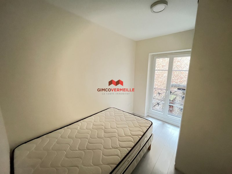 A proximité des commerces et des transports, un appartement de trois pièces comprenant une entrée, un séjour, une cuisine aménagée, deux chambres avec placards et une salle d 'eau.