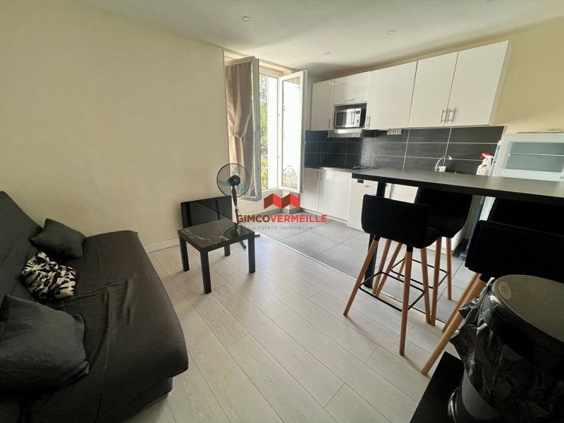 A proximité des commerces et des transports, un appartement de trois pièces comprenant une entrée, un séjour, une cuisine aménagée, deux chambres avec placards et une salle d'eau.