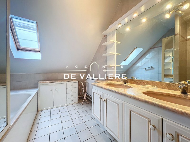 Au deuxième niveau deux chambres, dont une grande (15.28m²), une salle de bains avec WC et double vasque. Une cave et un box complètent ce bien.