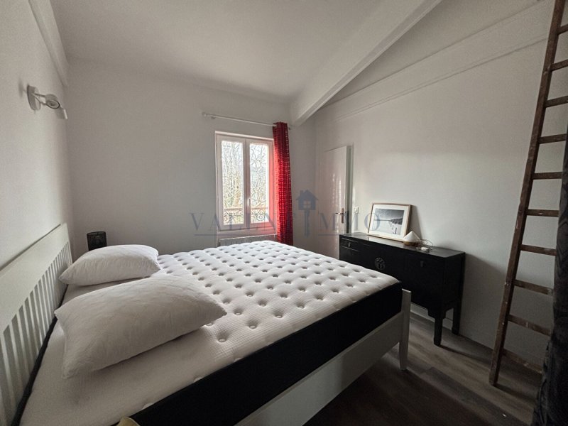 Au 1er étage, avec un escalier privatif menant à l'appartement, vous trouverez : Une entrée, un séjour avec placard, une cuisine séparée équipée, une chambre avec dressing, une salle d'eau ainsi que des WC séparés.
