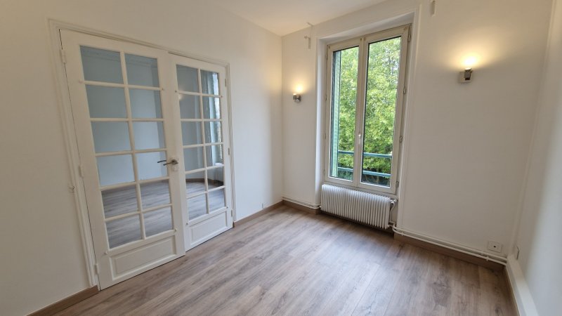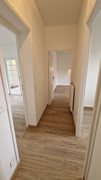 Rue Dagobert, plein centre ville. En étage (2/2), un appartement de 51,30 m² divisé en entrée, séjour, cuisine, deux chambres, salle d'eau et wc. Tout individuel au gaz, fibré et en très bon état.