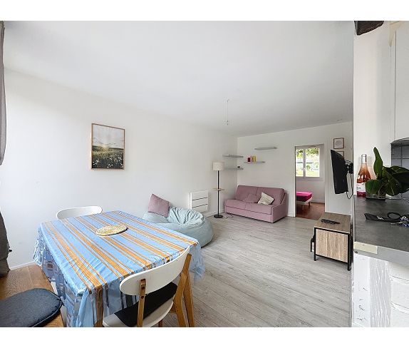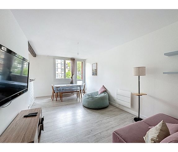 NOISY LE GRAND - F3 MEUBLE 54 M² Quartier des coteaux, en RDC surélevé, F3 meublé composé d'une entrée, un séjour, une cuisine ouverte, 2 chambres, une salle d'eau, un WC. Place de parking extérieure. Meublé entièrement équipé. Chauffage collectif - Eau chaude individuelle électrique.