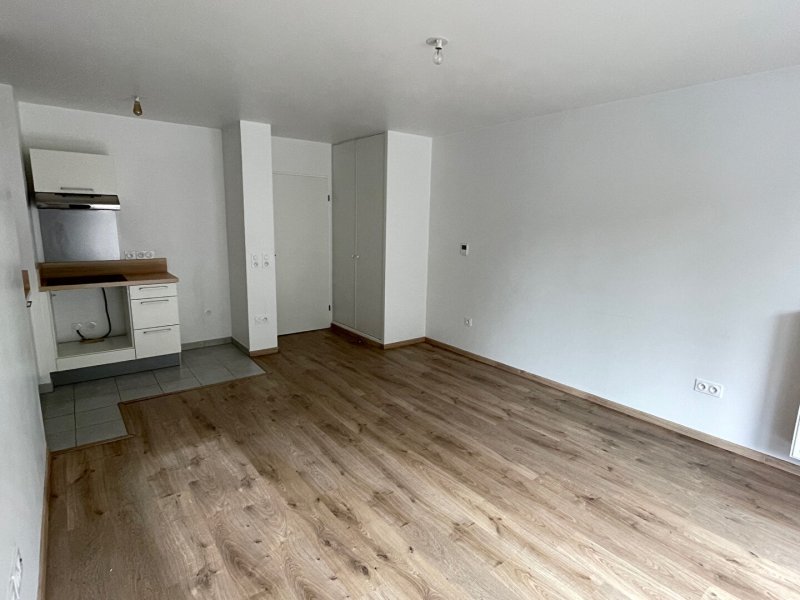 Un appartement au 1er étage de 2 pièces de 47,79m² comprenant : une entrée, pièce principale avec une cuisine ouverte aménagée et semi équipée (évier, plaques, hotte) et un balcon , 1 chambre, salle de bains, water-closet séparé.