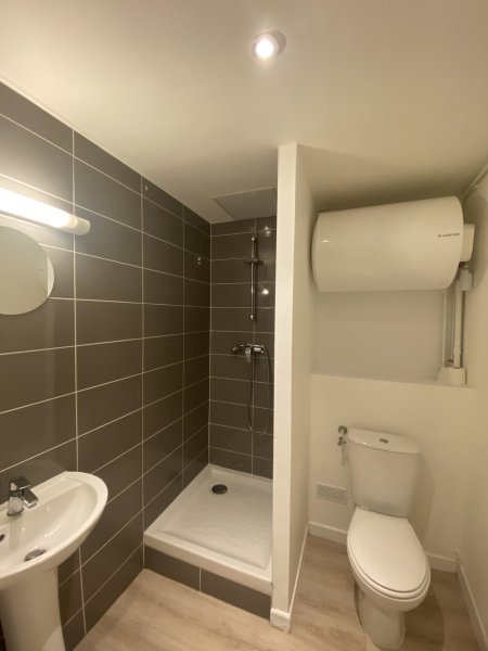 5' RER, petit immeuble rural, Appartement F1: cuisine équipée (plaques, frigo), séjour, salle d'eau avec wc. 585 EUR C.C D.G : 570 EUR / F.A : 300.45 EUR