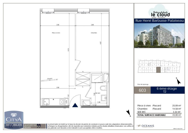 À LOUER : Appartement récent T2 situé à Palaiseau, dans le département de l'Essonne (91120). Ce bien immobilier offre une superficie de 43 m², idéal pour un couple ou une personne seule à la recherche d'un cadre de vie agréable et fonctionnel.