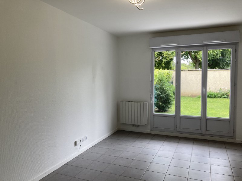Ville de POISSY. Résidence de standing au calme. Appartement 2 Pièces au rez-de-chaussée lumineux composé d'une entrée avec placard, d'une pièce à vivre avec cuisine ouverte aménagée donnant sur belle terrasse carrelée avec jardin clos. Chambre avec placard. Salle d'eau avec wc. Place de parking au sous-sol. Fenêtres double vitrage. Chauffage individuel électrique.