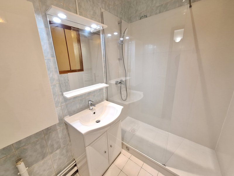 POISSY. CENTRE VILLE. A 8 minutes à pied de la gare RER A et ligne J. Appartement 2 Pièces refait à neuf composé d'une entrée, d'une cuisine moderne et fonctionnelle aménagée neuve (Eléments hauts et bas, plaque de cuisson, hotte et four) ouverte sur salon, d'une chambre avec armoire neuve, d'une salle d'eau avec douche à l'italienne et d'un wc séparés. Fenêtres double vitrage. Eau froide collective par immeuble. Chauffage individuel électrique et eau chaude par ballon électrique. BEL APPARTEMENT REFAIT A NEUF.