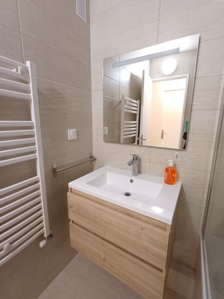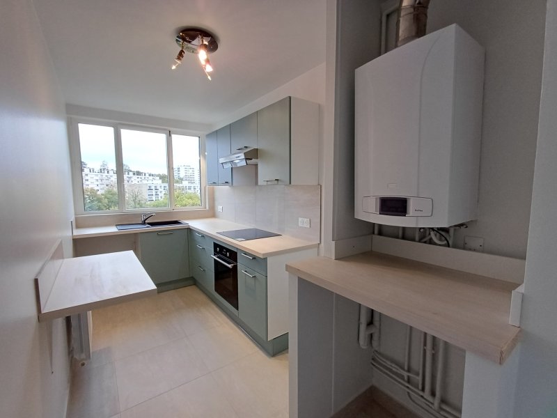 POISSY - QUARTIER LA BRUYERE. Appartement 4 Pièces au 6ème étage avec ascenseur composé d'une entrée avec placard, d'une cuisine aménagée (Eléments hauts et bas, plaque de cuisson, hotte et four). Salle à manger/Salon (27m2) donnant sur loggia (3,45m2). Dégagement. 2 Chambres (9,59m2 et 11,41m2) dont une avec placard. Salle de bains. Wc séparé. Chauffage individuel au gaz. Eau froide collective et eau chaude individuelle. Cave. APPARTEMENT REFAIT A NEUF