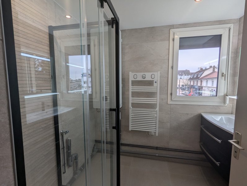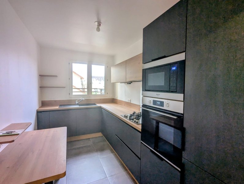 Dans résidence au centre-ville de Beauchamp, au 1er étage, à louer F3 refait à neuf vous offrant entrée, séjour donnant sur balcon, cuisine équipée, deux chambres, salle d'eau, wc. Box en sous-sol. Revenus exigés: 3131EUR. Honoraires de location: 871EUR dont 201EUR d'état des lieux. Dépôt de garantie: 1080EUR. Libre de suite.