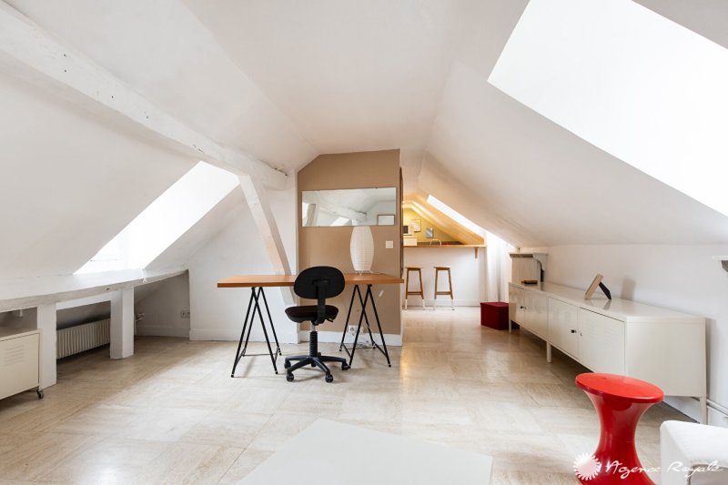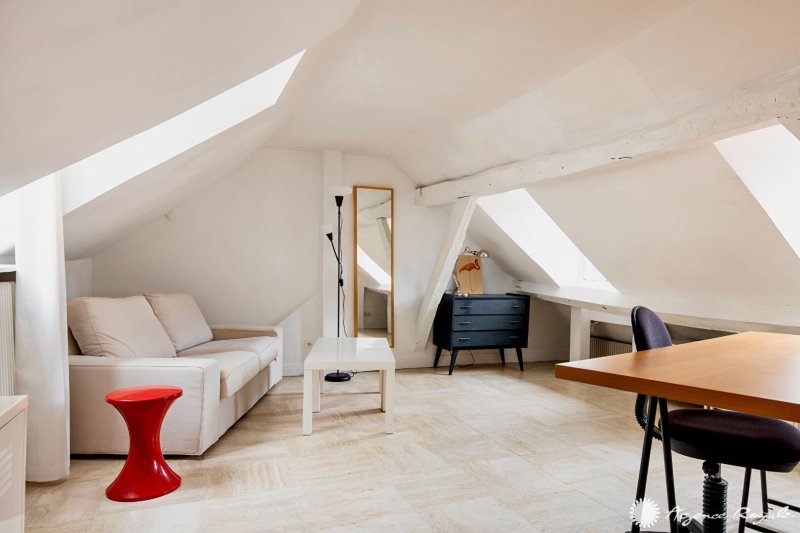 Dans un immeuble au pied du RER : Très beau Studio MEUBLÉ de 58.38m² au sol , 28.72m² Carrez comprenant : Entrée avec placards, Séjour avec Cuisine américaine équipée et Coin nuit, Salle de bain, WC séparé.
