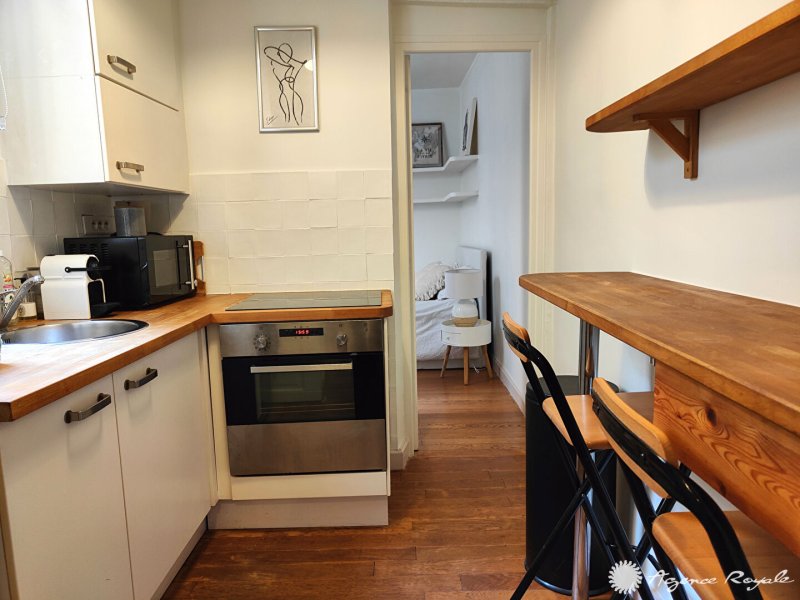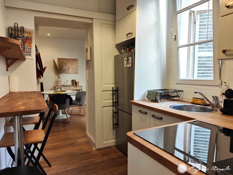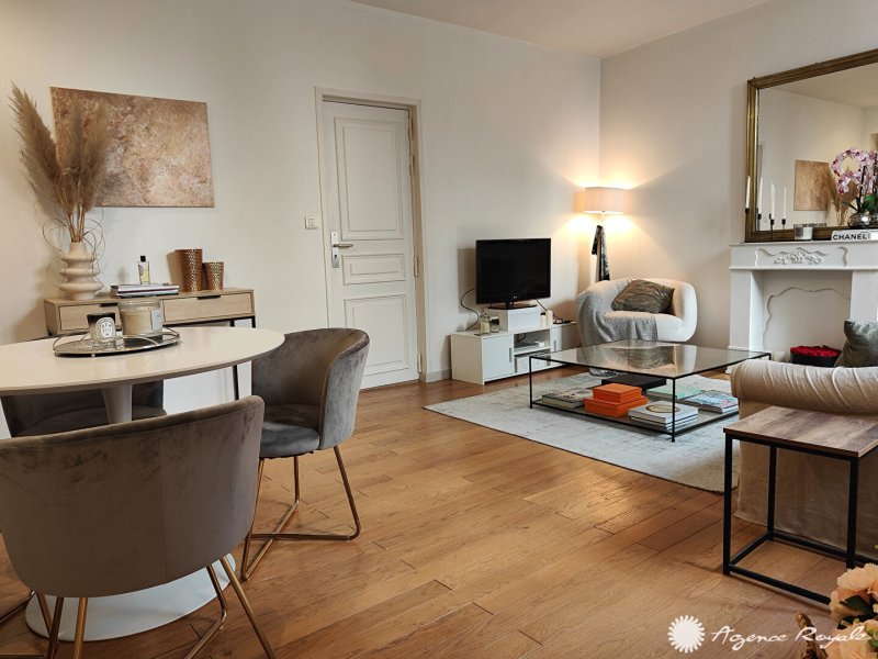 Bel Appartement MEUBLÉ de 43.44m² avec une décoration soignée : beau Séjour parqueté de 21m², Cuisine équipée, Chambre parquetée de 12m² avec placard, Salle de Bains avec branchement machine. Local vélos.