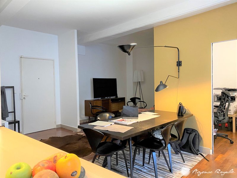 Au 1er étage, Bel appartement de 63,45m² comprenant : Séjour avec parquet, Cuisine américaine aménagée, Chambre de 14,50m² avec parquet , placards, Bureau de 6,77m², Salle de bains. Proche toutes commodités.
