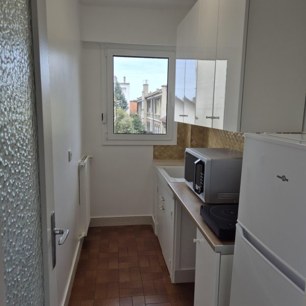 RUE CARNOT, A PROXIMITE COMMERCES ET ECOLES , APPARTEMENT MEUBLE TYPE STUDIO DE 28 M2 AU 2EME ETAGE AVEC ASCENSEUR COMPRENANT : ENTREE AVEC RANGEMENT SEJOUR SUR BALCON, CUISINE EQUIPEE, SALLE DE BAINS AVEC WC. CHAUFFAGE ET EAU CHAUDE COLLECTIF. LIBRE DE SUITE .