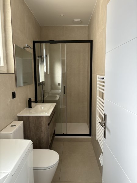 un appartement comprenant : Séjour avec cuisine équipée, salle d'eau avec wc, deux chambres. Chauffages individuel électrique et production d'eau chaude individuelle par ballon individuel électrique