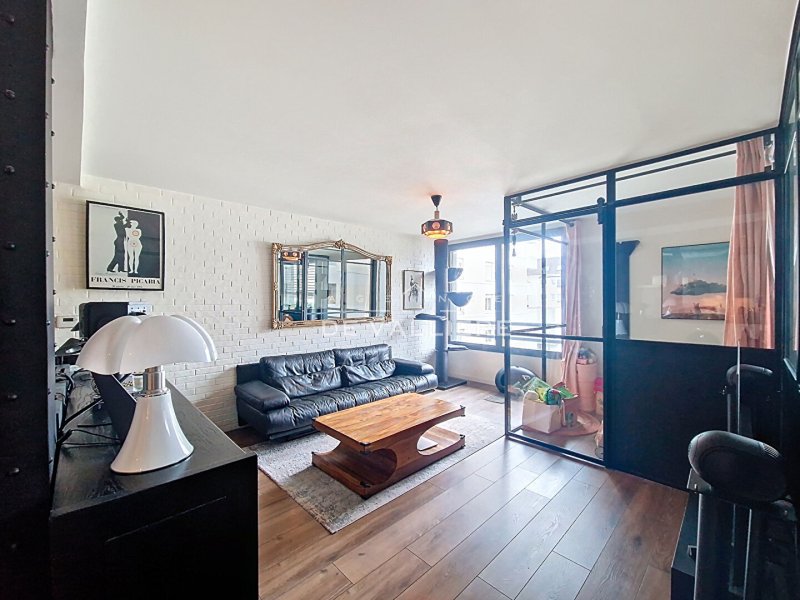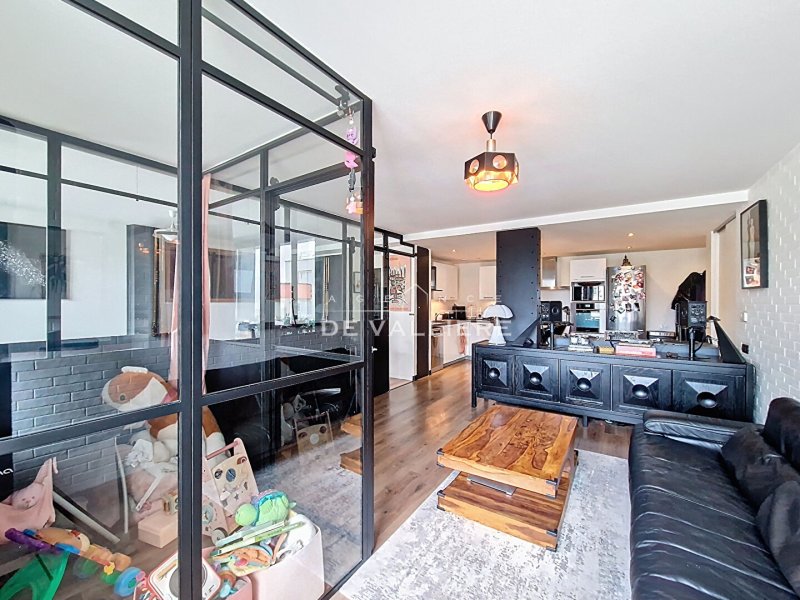 Esprit loft avec verrières en acier noire, Parquet chêne et beaux volumes, lumineux, Cuisine équipée haut de gamme, Chambre spacieuse avec salle d'eau moderne attenante, Bureau indépendant, idéal pour le télétravail, Vue dégagée et Place de parking en sous-sol