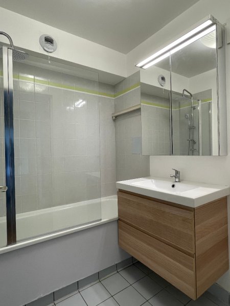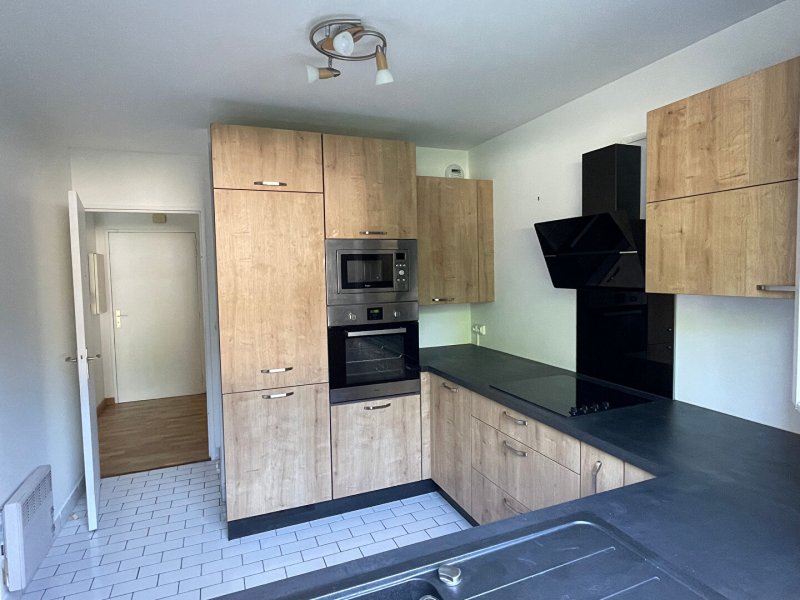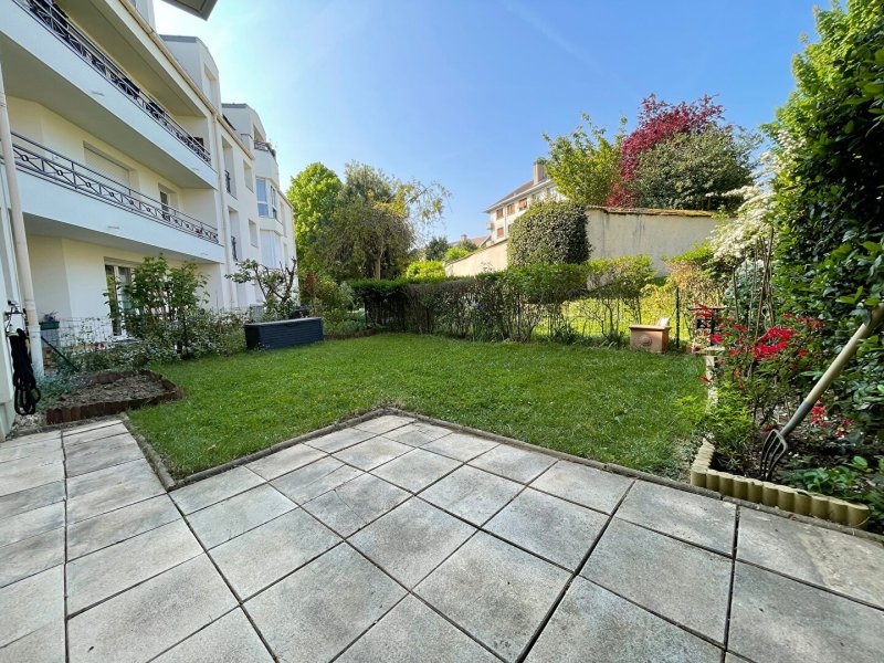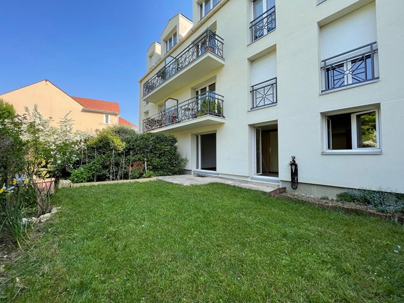 Un appartement de 2 pièces en RDC de 55 m² comprenant une vaste entrée avec placards, séjour donnant sur une terrasse de 9 m² et un jardinet de 54 m², cuisine aménagée et équipée, chambre, salle de bains, WC.