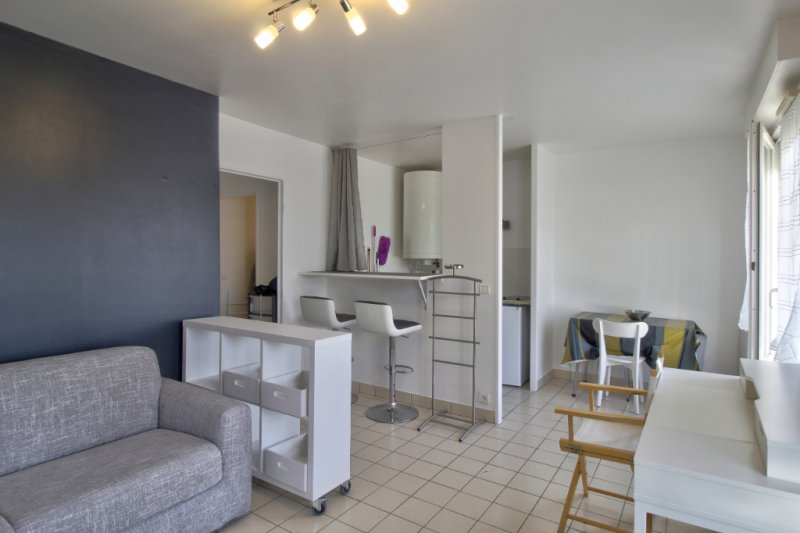 LOCATION MEUBLE - Appartement Bezons 1 pièce(s) 27m2 - Bezons centre ville - Dans résidence sécurisée et au calme, un studio meublé comprenant une entrée avec placard, une pièce principale avec une cuisine américaine et une salle de bains avec wc, un box et une cave.
