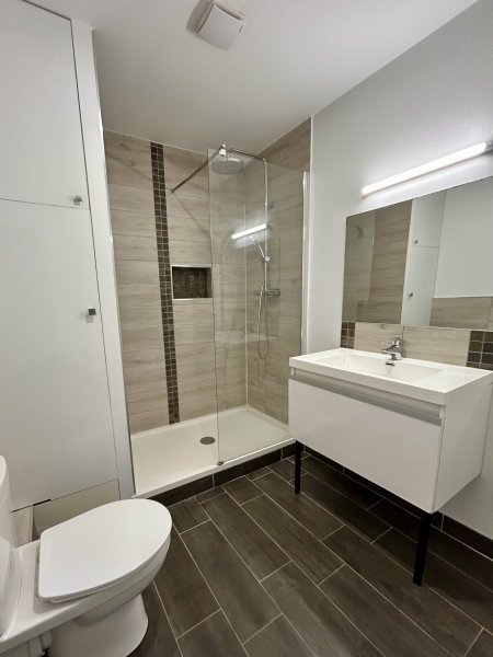 Venez découvrir cet appartement de type F3 situé sur la commune de Vigneux-sur-Seine dans un quartier pavillonaire, offrant : une entrée, un séjour avec cuisine ouverte aménagée, deux chambres et une salle de douche avec WC et emplacement pour une machine à laver et un sèche linge. Ce bien s'accompagne de deux emplacements de parking en surface et d'une cave spacieuse au sous-sol. Chauffage et eau chaude individuels électriques, eau froide collective. Proche de toutes commodités : commerces, écoles, cinéma, gymnase, bus, etc. N'hésitez pas à contacter l'agence au 01.69.48.33.26. Note d'information : nous n'acceptons pas les dossiers avec garants excépté pour les étudiants.