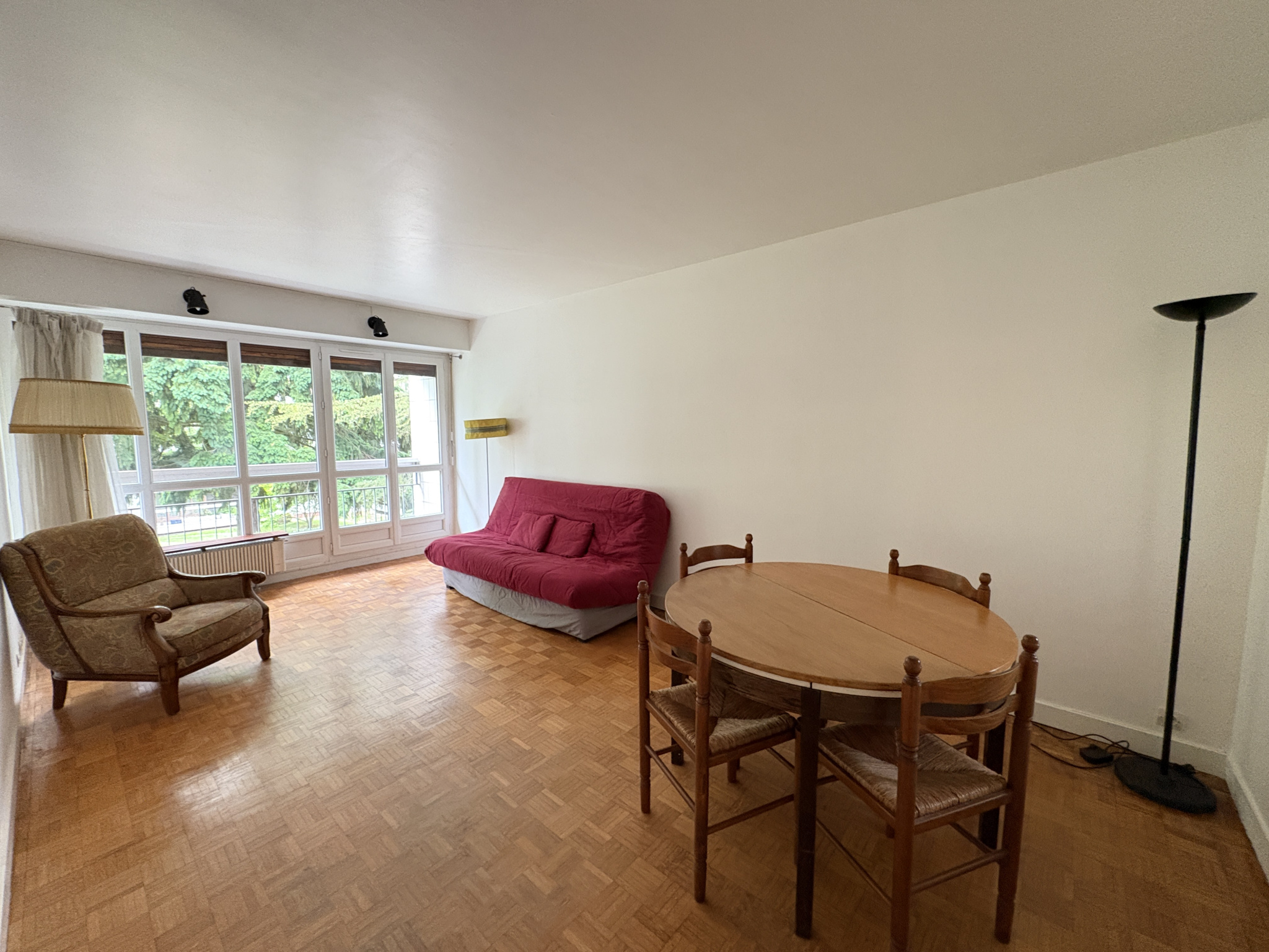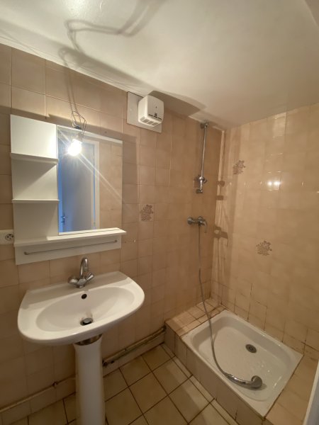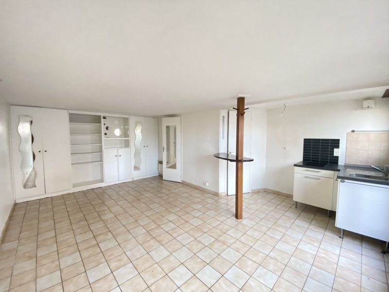 12' RER, petite résidence, studio comprenant : coin-cuisine aménagé (plaque), séjour, rangements, salle d'eau avec wc. Cave. Parking extérieur. 465 EUR C.C D.G : 450 EUR / F.A : 366.73 EUR